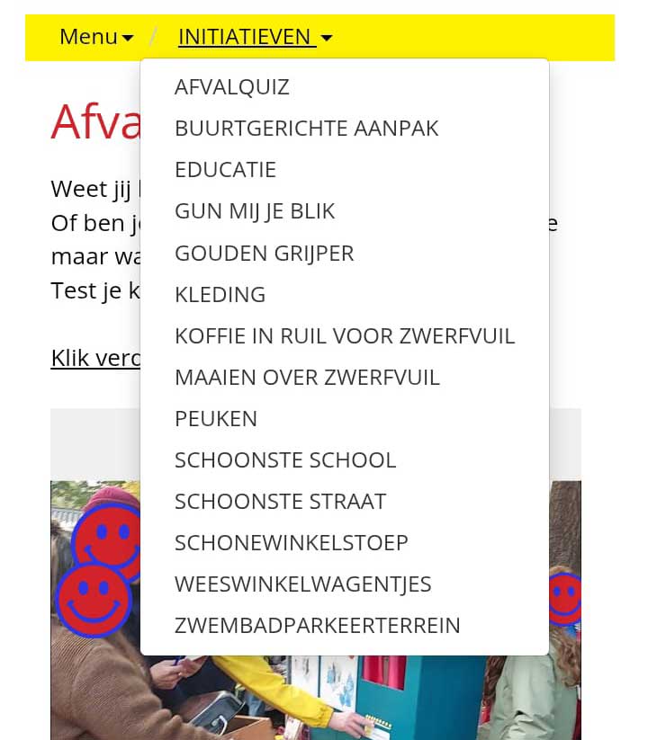 Kortom het is proeftuin om dingen uit te proberen, zogenaamde 'pilots'. Deze initiatieven vind je in de subrubrieken en zijn lastig te zien op je telefoon. Klik eerst op initiatieven en dan krijg je een klein driehoekje met de pop up: