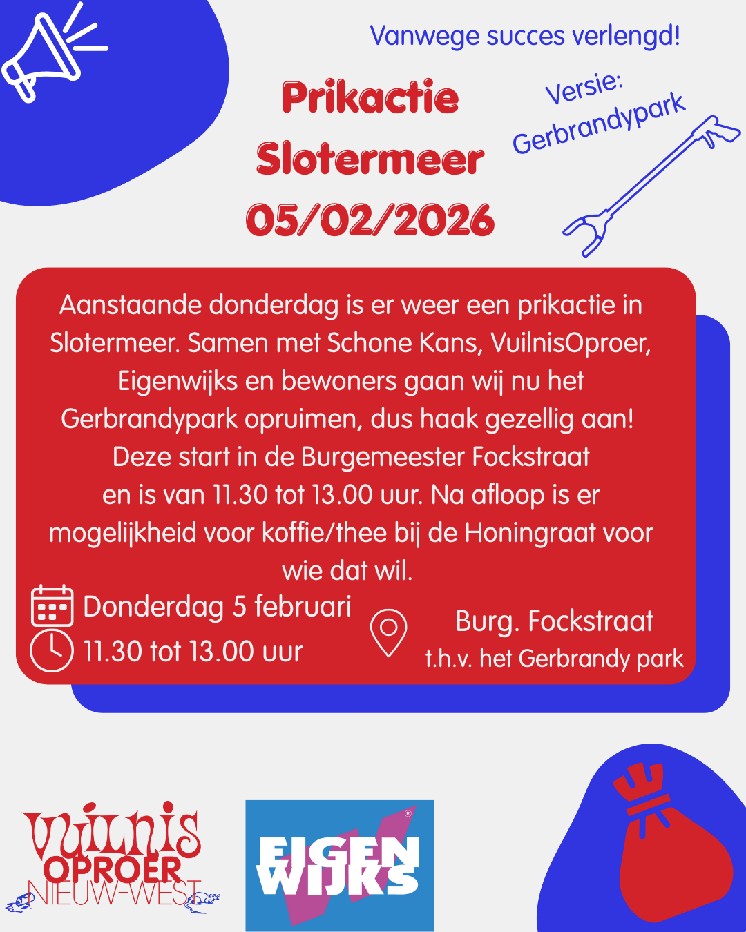 We maken het karwei donderdag 5 februari af hopen wij en verzamelen daarvoor om 11:30 uur op de Burgermeester Fockstraat ter hoogte van het Gerbrandypark.