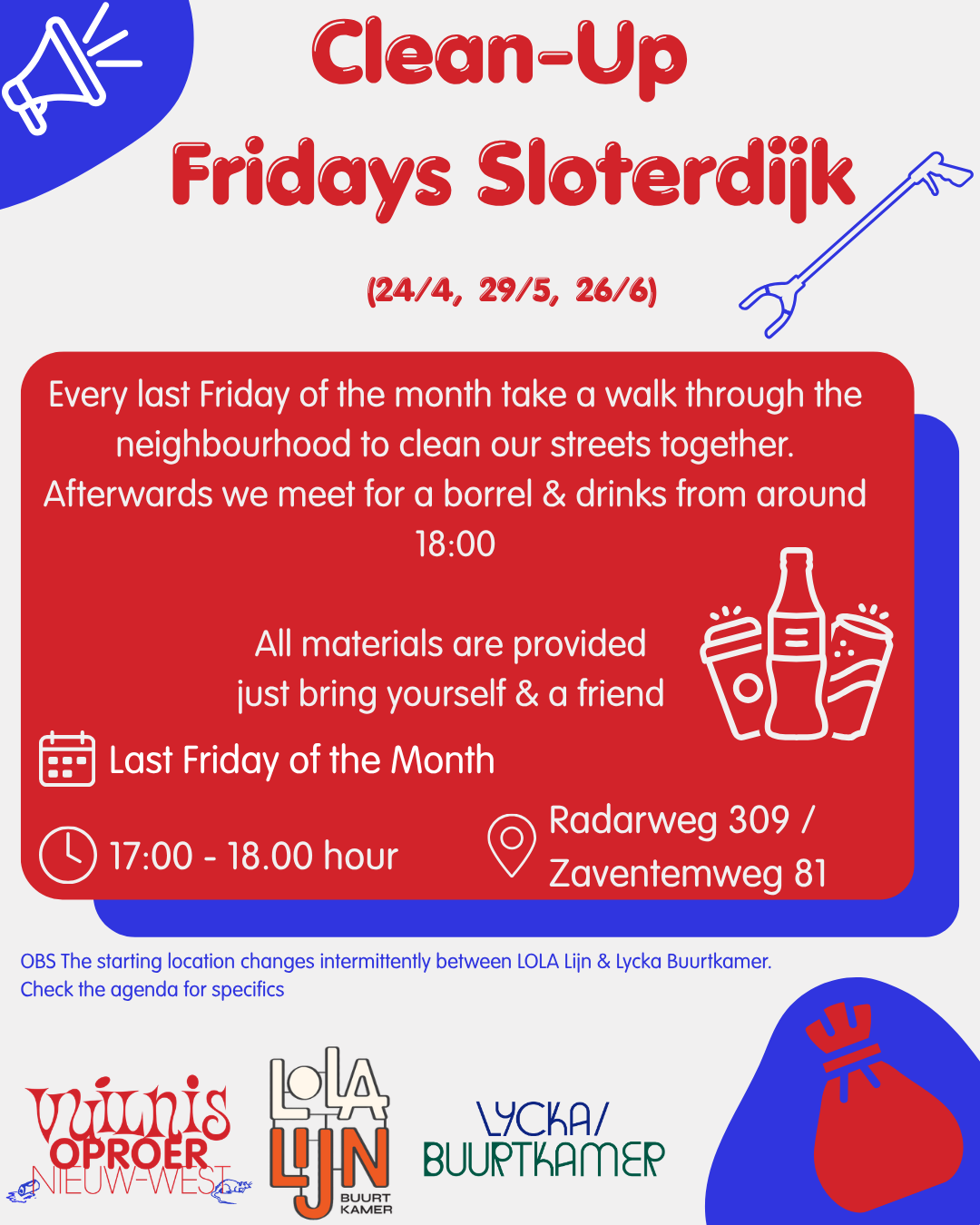 Clean-up Fridays in Sloterdijk (24/4, 29/5, 26/6)