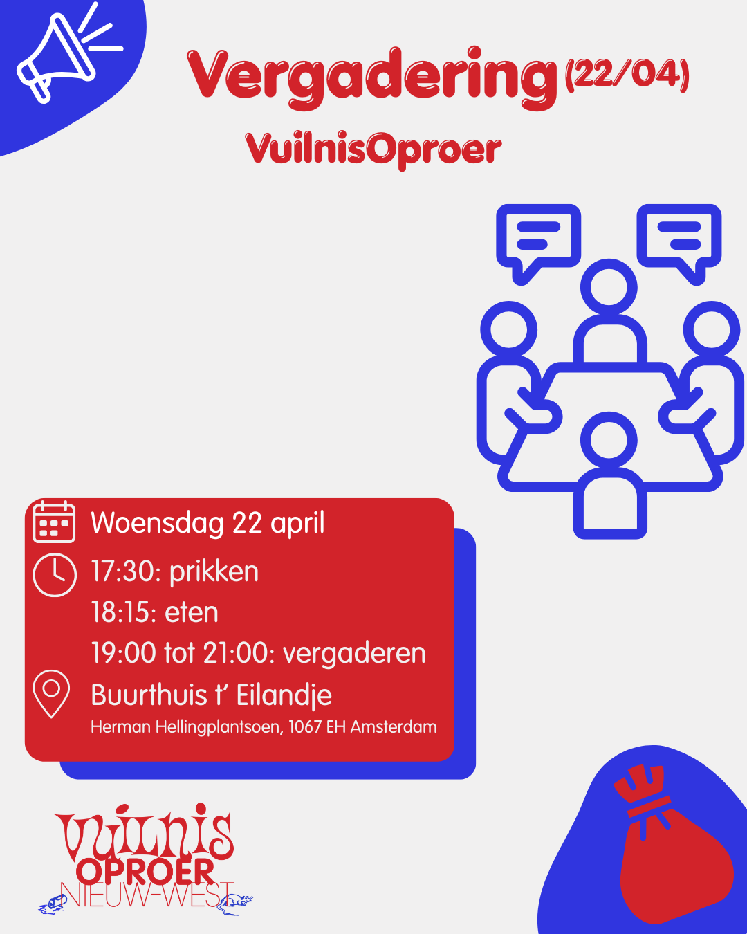 • 19:00 tot 21:00: vergadering van het VuilnisOproer